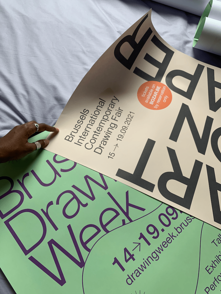 Affiches et brochure pour l’édition 2021 de art on paper et de la brussels drawing week