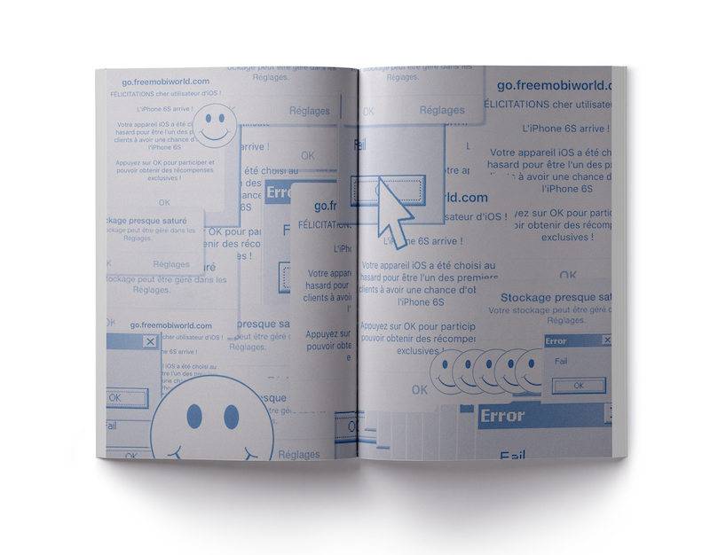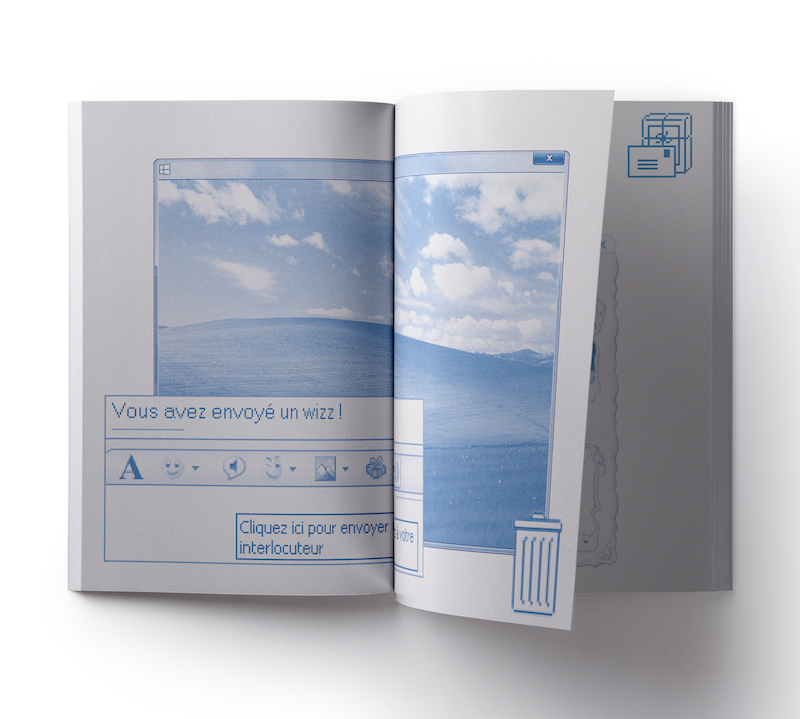 J’ai choisi de retranscrire un historique de ma mémoire numérique sous forme d’objet éditorial. Je montre ainsi l’évolution graphique du numérique que j’ai pu constatée, mais qui fait également partie de la mémoire de ma génération.