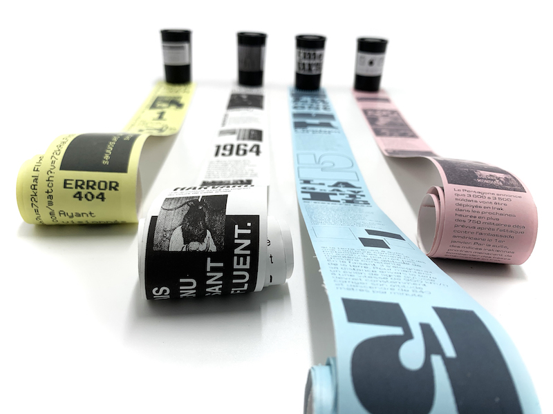 J’ai ainsi proposé une collection de fanzine sous forme de petits rouleaux. La rumeur se raconte à nous petit à petit par un procédé de lecture inhabituel. Ces petits rouleaux se présentent dans des boîtes à pellicule photos,facilitant la transmission de la rumeur par le petit format.