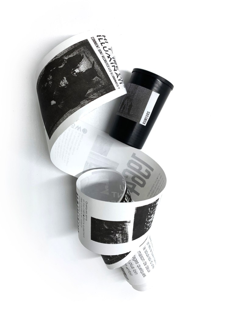 La rumeur se définit comme un bruit, une source incontrôlée qui se répand. Le sujet était de créer un objet éditorial ou une collection d’objets, traduisant une rumeur.